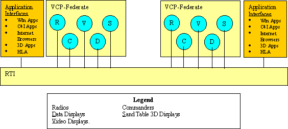 he demonstration system consists of two VCP nodes or stations connected by a 9600 baud serial line or 14.4 modems to emulate the SINCGARS radios. Optionally, nodes may be connected via Ethernet for higher bandwidth communications. In order to demonstrate both a stationary/vehicular configuration and a man-portable configuration of the VCP for each combination, each station was equipped with an HMD device and high-resolution video display.
